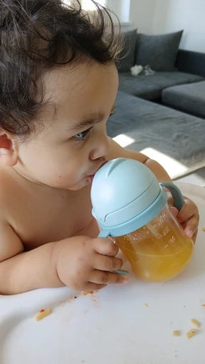 The gravity ball straw allows your baby to drink from any angle, making self-feeding easy and reducing spills.