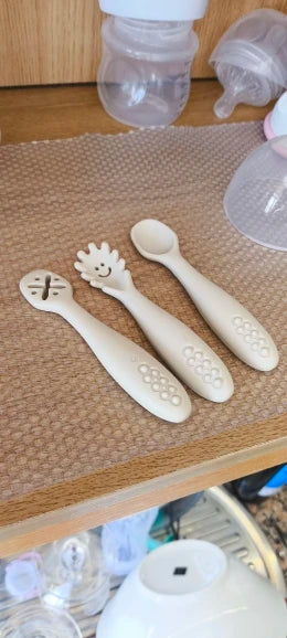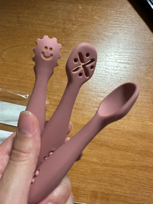 Our silicone spoon and fork set is designed to help your toddler learn to eat independently with ease. The soft material ensures safety, while the ergonomic design minimizes spills, making meals more pleasant for you and your child.